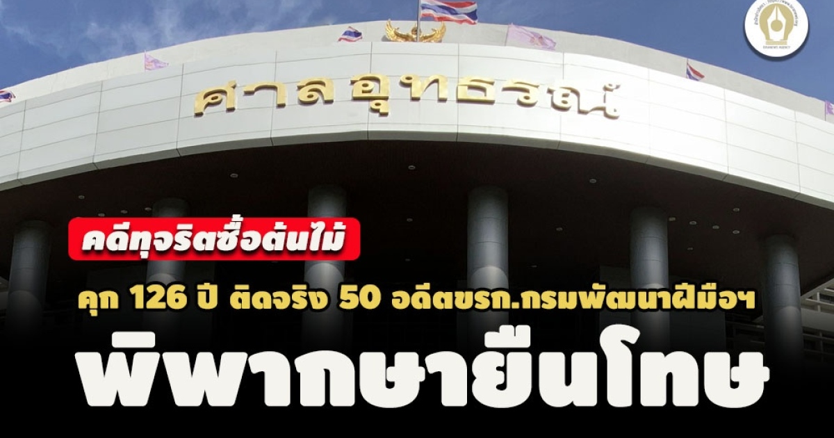 ป.ป.ช. เผยแพร่ความคืบหน้าคดีกล่าวหา 'ชาย บัวเพ็ชร' อดีตนักวิชาการฝึกอาชีพ 5 กรมพัฒนาฝีมือแรงงาน ทุจริตจัดซื้อต้นไม้ ปี 42 -45 จำนวน 69 ครั้ง ล่าสุด ศาลอุทธรณ์ พิพากษายืนโทษ คุก 126 ปี แต่โดนจริง 50 ปี - หุ้นส่วนผู้จัดการ หจก. อยู่สุขก่อสร้าง โดน 8 ปี