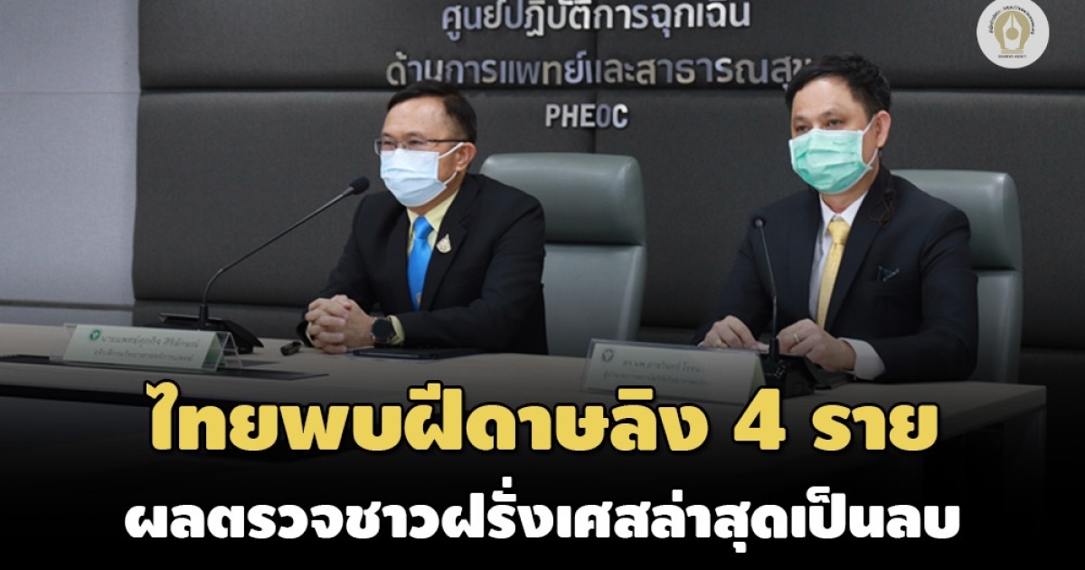 สธ.เผยผู้ป่วยฝีดาษลิงในไทยยังพบ 4 ราย เป็นสายพันธุ์แอฟริกาตะวันตก A2 ย้ำไม่รุนแรง วอนอย่าวิตกกังวลไม่ได้ติดง่ายๆ ส่วนกรณีนักท่องเที่ยวชาวฝรั่งเศสผลตรวจเป็นลบ