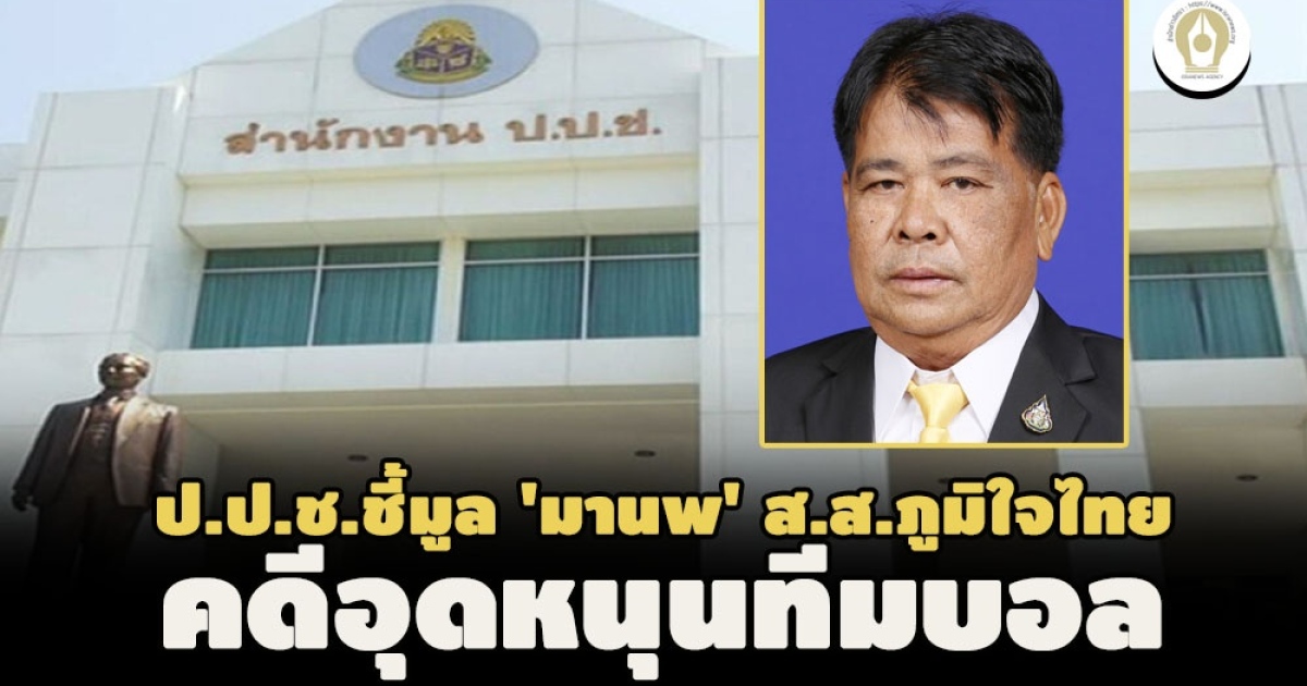 ป.ป.ช.ลงมติเอกฉันท์ ชี้มูลความผิดทางอาญา 'มานพ ศรีผึ้ง' ส.ส.นครสวรรค์ พรรคภูมิใจไทย พร้อมผอ.ศูนย์การกีฬาแห่งประเทศไทย คดีอุดหนุนนักกีฬาร่วมแข่งขันฟุตบอลชาย สมัยเป็นนายก อบจ. ทำรัฐเสียหาย 19.5 ล. - เจ้าตัวยังไม่ทราบเรื่อง ข้องใจเพิ่งส่งคำชี้แจงแก้ข้อกล่าวทำไมสรุปคดีเร็ว เผยหากศาลฯ รับฟังมีผลกระทบตำแหน่ง ส.ส.แน่