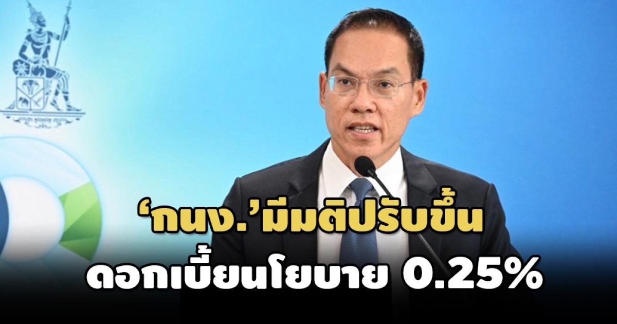 'กนง.' มีมติ 6 ต่อ 1 เสียง ขึ้นดอกเบี้ยนโยบาย 0.25% ระบุ 'เงินเฟ้อ' ในระยะต่อไปยังเสี่ยงด้านสูง พร้อมย้ำการปรับขึ้น 'ดอกเบี้ย' จะทำแบบค่อยเป็นค่อยไป
