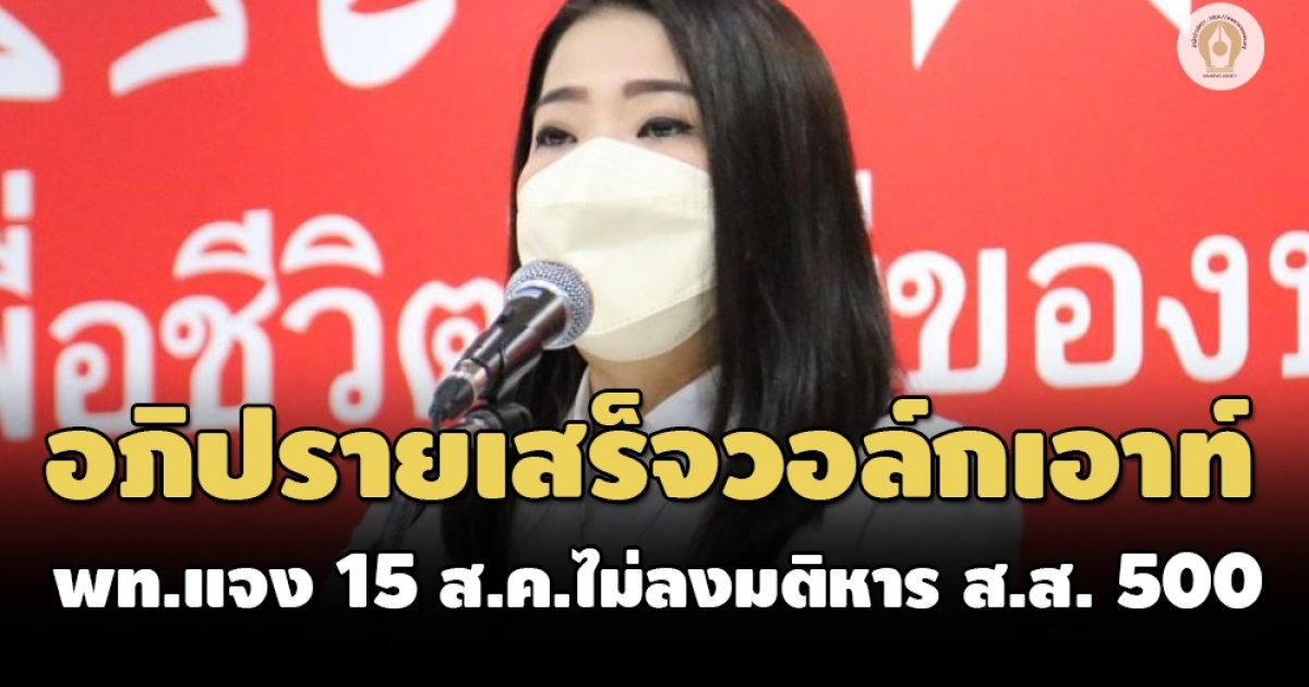 เพื่อไทยแจง 15 ส.ค.ไม่ร่วมลงมติเลือก ส.ส.หาร 500 ชี้สูตรต้องใช้ 100 หารเท่านั้น แจงอภิปรายเสร็จ วอล์กเอาท์ทันที เหตุต้องการคัดค้านให้ถึงที่สุด