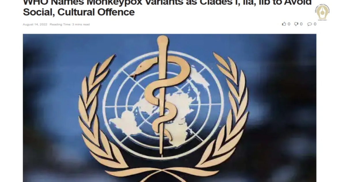 สำนักข่าวอิศรา (www.isranews.org) รายงานว่าองค์การอนามัยโลกหรือ WHO ได้ออกแถลงการณ์ เมื่อวันศุกร์ (12 ส.ค.) ประกาศชื่อใหม่ของเชื้อไวรัสฝีดาษลิงชนิดกลายพันธุ์สายพันธุ์ต่าง ๆ ซึ่งกำลังแพร่ระบาดในปัจจุบัน เพื่อหลีกเลี่ยงการดูหมิ่นทางวัฒนธรรมหรือสังคม