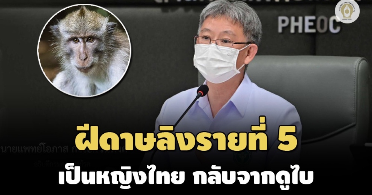 ผู้สื่อข่าวรายงานว่า เมื่อวันที่ 15 ส.ค. 2565 นพ.โอภาส การย์กวินพงศ์ อธิบดีกรมควบคุมโรค เปิดเผยว่า ขณะนี้พบประเทศไทยพบผู้ป่วยฝีดาษลิงรายที่ 5 เป็นผู้หญิงไทย อายุ 25 ปี ไปอยู่ต่างประเทศและมีอาการป่วยที่ต่างประเทศและเดินทางกลับมาจากดูไบ สหรัฐอาหรับเอมิเรตส์ เข้ามาถึงไทยวันที่ 14 ส.ค. เจ้าหน้าที่ด่านควบคุมโรคติดต่อระหว่างประเทศ ท่าอากาศยานสุวรรณภูมิ มีระบบคัดกรอง ตรวจและสังเกตอาการ พบเข้าข่ายสงสัย เนื่องจากดูมีอาการเหมือนไม่ค่อยสบาย พอเข้าไปสอบถามก็สังเกตเห็นตุ่ม จากการซักประวัติก็ให้ความร่วมมือดี จึงนำมารับการตรวจวินิจฉัยใน รพ. ผลตรวจทางห้องปฏิบัติการยืนยันว่าเป็นโรคฝีดาษลิง เข้าสู่การรักษาตามระบบปกติ