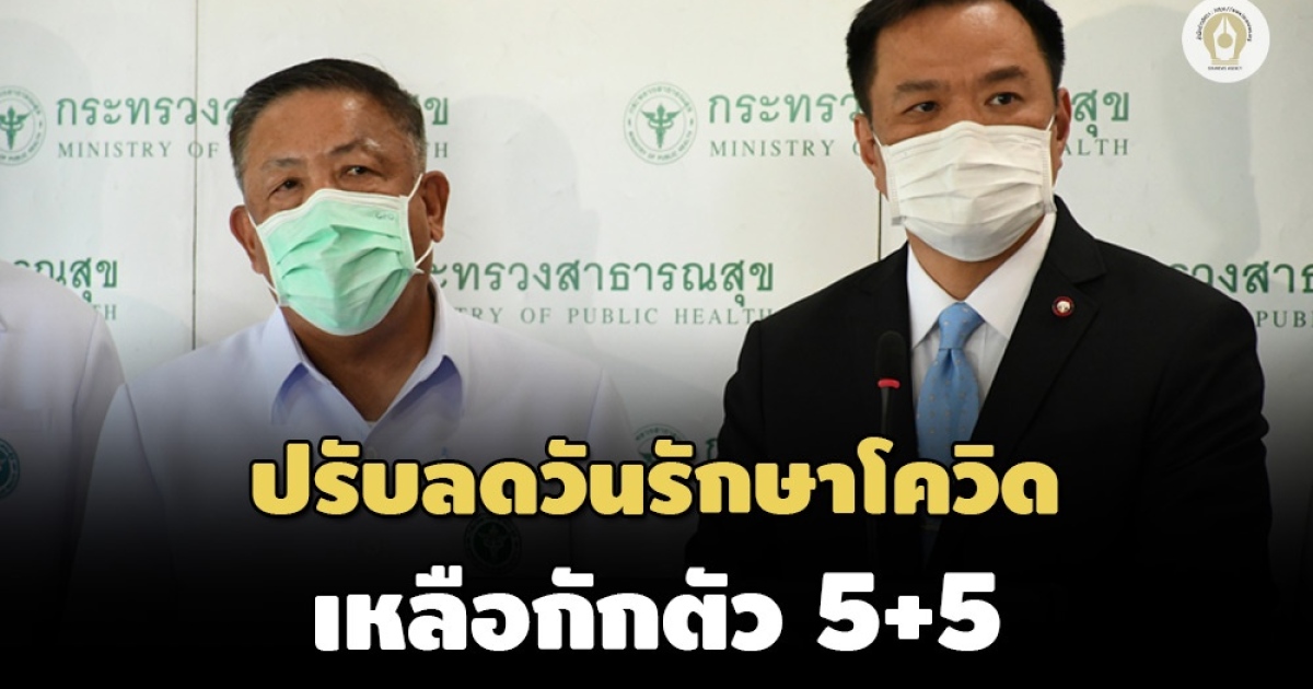 สธ.ลดวันรักษาโควิด เดิม 7+3 เหลือกักตัว 5+5 เตรียมเสนอ ศบค.ปรับจากโรคติดต่อแห่งชาติเป็นเฝ้าระวัง 19 ส.ค.นี้ ย้ำมี 'โมลนูพิราเวียร์' มีเพียงพอเป็นยาหลักรักษา