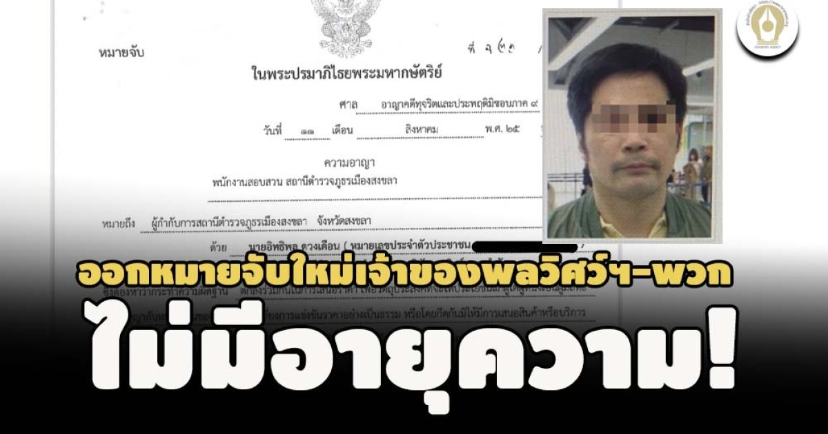ศาลคดีทุจริตฯ ภาค 9 ออกหมายจับฉบับใหม่ 'อิทธิพล ดวงเดือน' เจ้าของบริษัทพลวิศว์ เทค ผู้ต้องหาฮั้วประมูลรถซ่อมทาง อบจ.สงขลา - 'คู่เทียบ' หลังหลบหนีออกนอกประเทศไปจอร์เจีย แบบไม่มีอายุความ