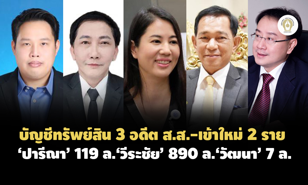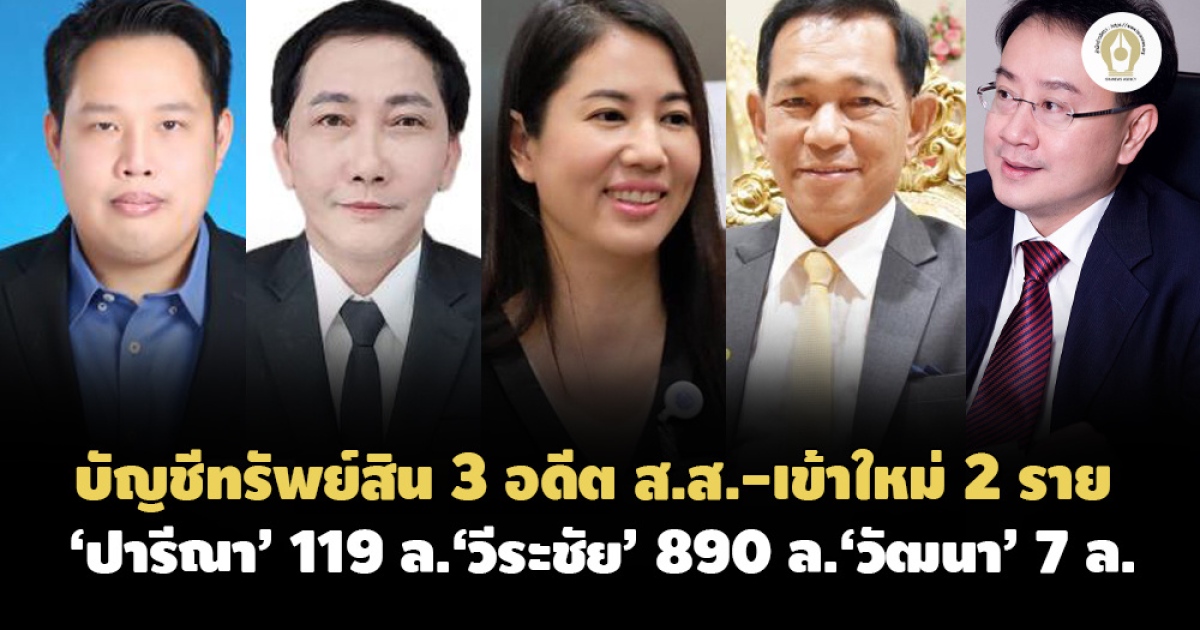 ป.ป.ช.เปิดทรัพย์สิน 3 อดีต ส.ส. ‘ปารีณา ไกรคุปต์’ 119.66 ล้านบาท ‘วีระชัย วีระเมธีกุล’ 890.58 ล้านบาท ‘วัฒนา สิทธิวัง’ 7.64 ล้านบาท ส่วน ส.ส.เข้าใหม่ 2 ราย ‘ชัยทิพย์ กมลพันธ์ทิพย์’ 70.93 ล้านบาท ‘อิสรพงษ์ มากอำไพ’ 38.79 ล้านบาท