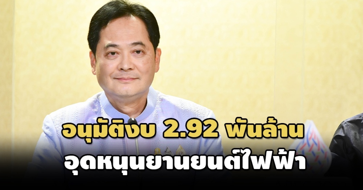 ครม.อนุมัติ 2,923 ล้านบาท ดำเนินมาตรการสนับสนุนการใช้ยานยนต์ไฟฟ้า อุดหนุนรถยนต์ EV คันละ 70,000-150,000 บาท มอเตอร์ไซค์ไฟฟ้าอุดหนุนคันละ 18,000 บาท