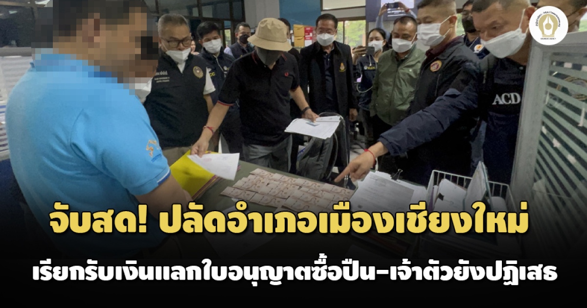 จับสด! ปลัดอำเภอเมืองเชียงใหม่ เรียกรับเงินแลกออกใบอนุญาตซื้อปืน เจ้าตัวอ้างเป็นสินน้ำใจ ไม่ใช่สินบน เบื้องต้นแจ้ง 3 ข้อหา ก่อนนำตัวส่งพนักงานสอบดำเนินการตามกฎหมายต่อไป