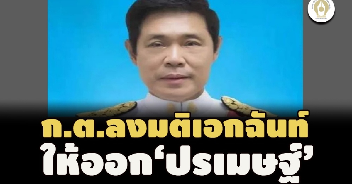 ก.ต.ลงมติเอกฉันท์ให้ออก ‘ปรเมษฐ์ โตวิวัฒน์' อดีต อธ.ศาลคดีทุจริตฯภาค 1 กรณีแทรกแซงการพิจารณาคดี 'ประหยัด พวงจำปา' ยื่นฟ้อง พล.ต.อ.วัชรพล ประสานราชกิจ ปธ.ป.ป.ช. สุภา ปิยะจิตติ อดีตอสส. เผยสมควรโดนปลดออก แต่ประกอบคุณงามความดีเลยลดโทษให้