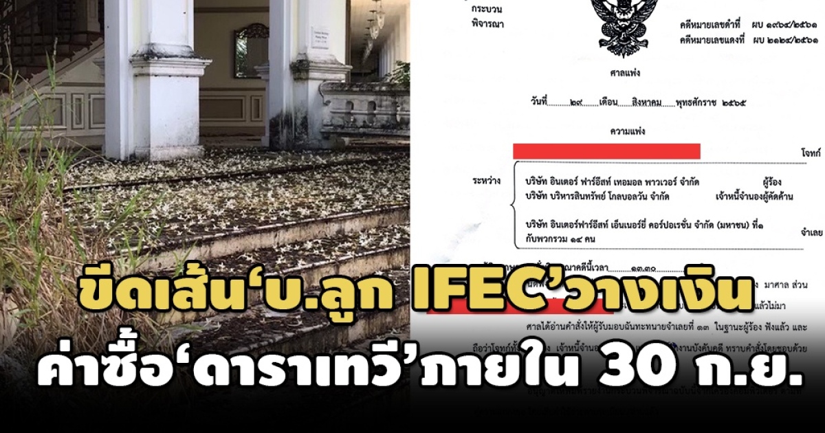 ‘เจ้าหนี้’ยื่นศาลฯค้าน‘บ.ลูก IFEC’ขอขยายเวลาวางเงินซื้อ‘ดาราเทวี’-อ้าง'เสี่ยงล้มละลาย'