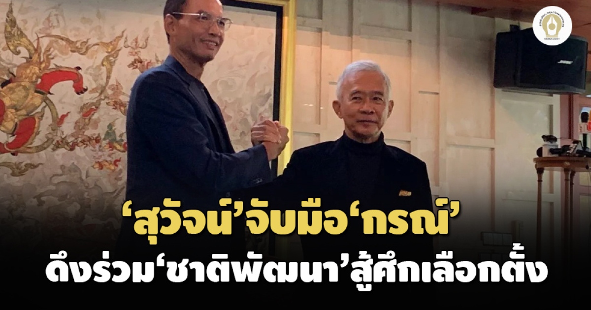 ‘สุวัจน์’ จับมือ ‘กรณ์’ ร่วมสู้ศึกเลือกตั้ง ปัดควบรวม ‘กล้า’ แต่เชิญร่วมทีมเศรษฐกิจ ‘ชาติพัฒนา’ เตรียมถก กก.บห.ปรับโครงสร้างพรรคสัปดาห์หน้า หวังกลับมาเป็นพรรคใหญ่ มีบทบาทสำคัญทางการเมือง