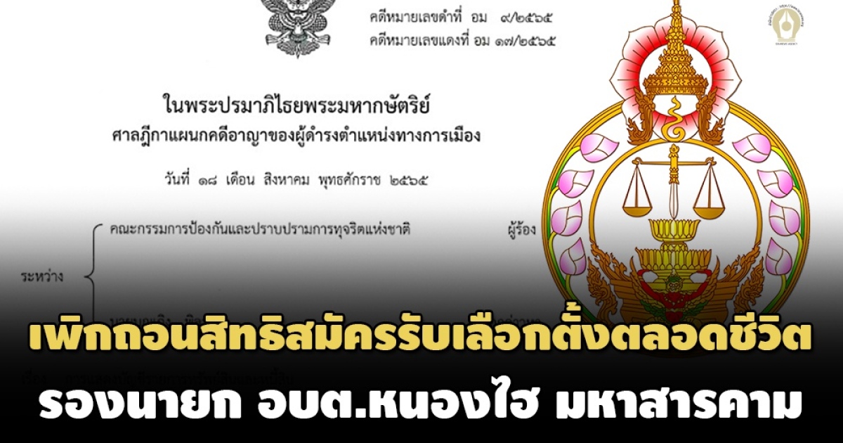 - ขาดอายุความอีกราย! ศาลฎีกาฯยกคำร้อง รองนายก อบต.สิงห์โคก จ.ร้อยเอ็ด ยื่นบัญชีฯเท็จ