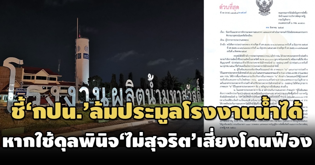 อ้างTORไม่ชัดเจน! ย้อนดูหนังสือ 3 ฉบับ ‘กปน.’ดันล้มประมูล โรงงานน้ำมหาสวัสดิ์ 6.5 พันล.