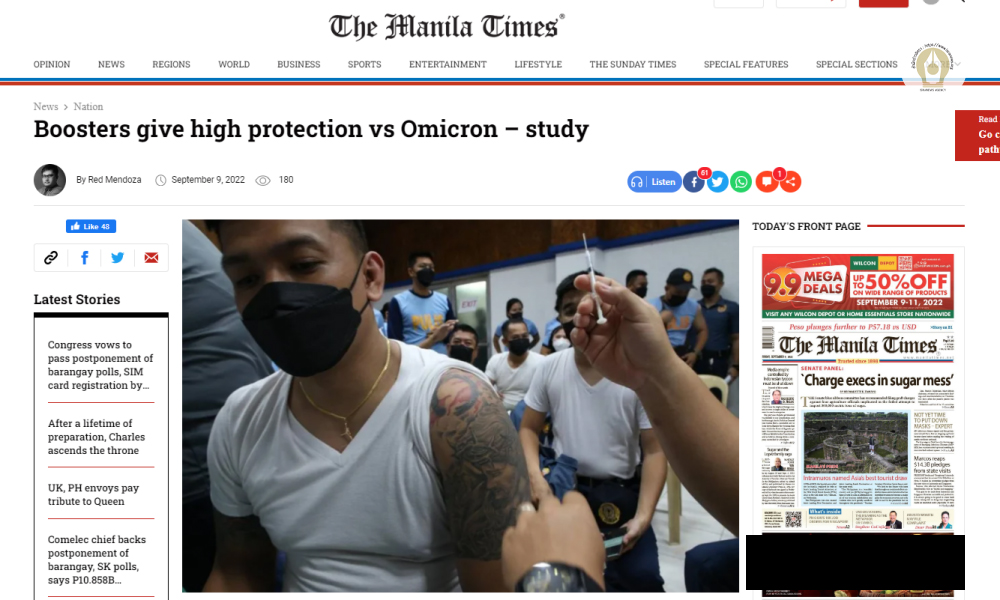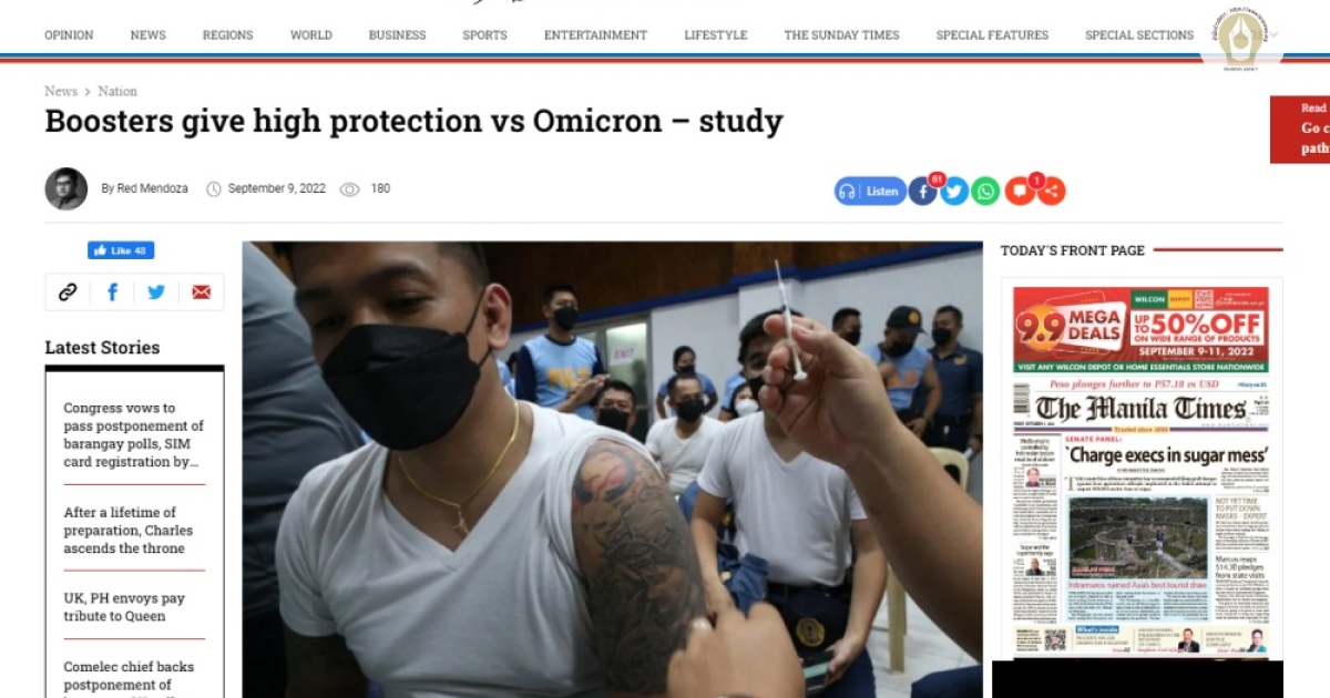 เรียบเรียงจาก:https://www.manilatimes.net/2022/09/09/news/national/boosters-give-high-protection-vs-omicron-study/1857725