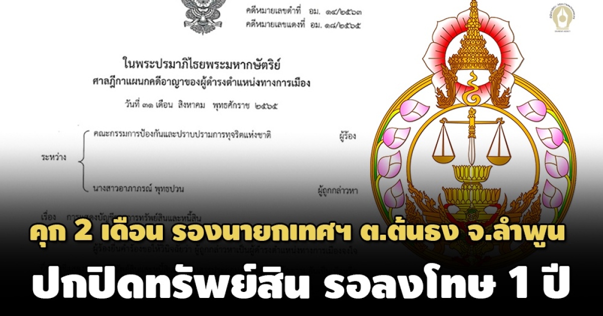 - ให้พ้นตำแหน่งทันที จำคุก1 เดือน รอลงโทษ รองนายก อบต.จ.ลพบุรี ยื่นบัญชีฯเท็จ ป.ป.ช.