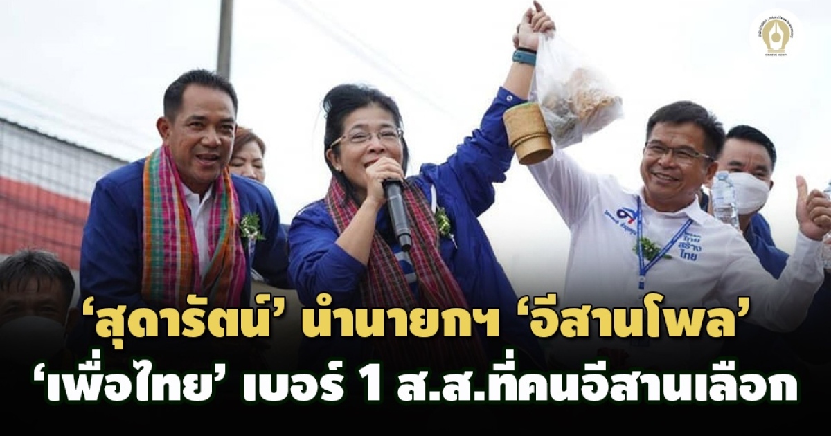 ‘อีสานโพล’ สำรวจ 1,065 ตัวอย่าง ชู ‘สุดารัตน์’ เป็นนายกรัฐมนตรี ส่วน ส.ส. จะเลือก ‘เพื่อไทย’ ขณะที่คนอีสานเผยเครียดเรื่องค่าครองชีพสูง-ราคาวัตถุดิบสูงมากสุด