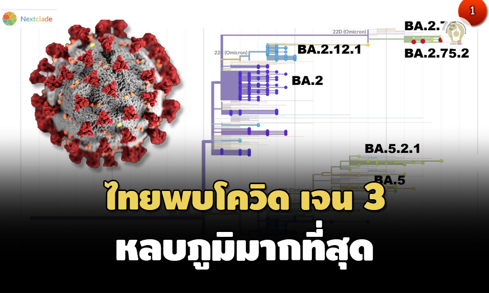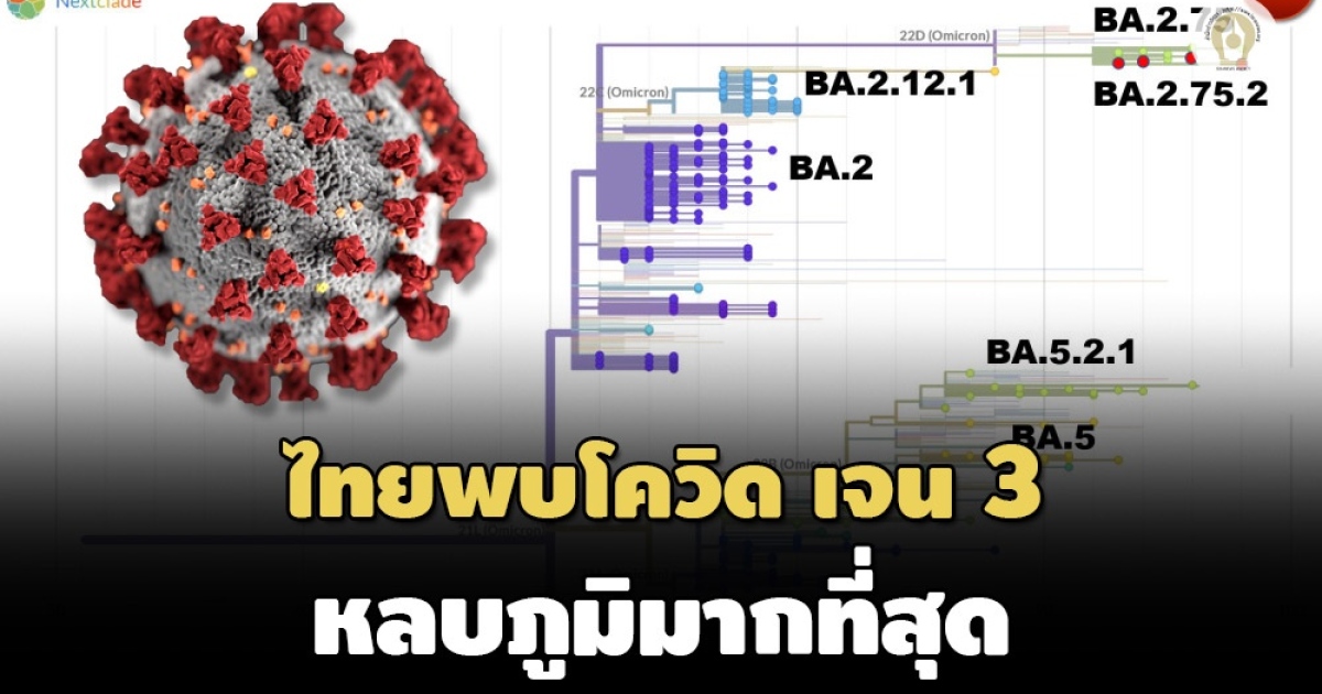 ไทยพบผู้ป่วยโควิดเจเนอเรชัน 3 โอไมครอน BA.2.75.2 ศูนย์จีโนมฯ เผยหลบภูมิคุ้มกันมากที่สุด พร้อมเตรียมรับมือ หวั่นแพร่ระบาดระลอกใหม่ เหตุวัคซีน-ยาที่มีอยู่ป้องกันรักษาแต่ละสายพันธุ์แตกต่างกัน