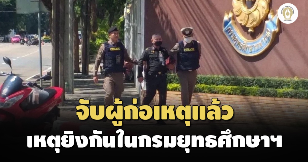 ตำรวจควบคุมตัวได้แล้ว เสมียน วทบ. มือก่อเหตุยิงกันในกรมยุทธศึกษา ถ.เทอดดำริ เบื้องต้นมีรายงานผู้เสียชีวิต 2 ราย บาดเจ็บ 1 ราย
