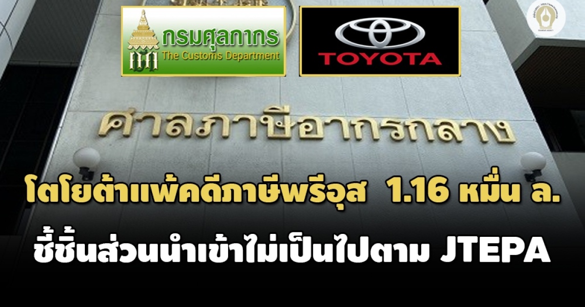 ศาลภาษีพิพากษาโตโยต้าแพ้คดีภาษีพรีอุส 1.16 หมื่น ล. ชี้ชัดชิ้นส่วนนำเข้าเป็นรถใกล้จะประกอบสำเร็จแล้ว ไม่เข้าข่ายข้อตกลง JTEPA