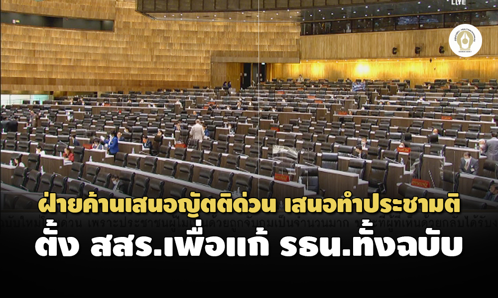 ผู้สื่อข่าวรายงานว่า เมื่อวันที่ 15 ก.ย.2565 เวลา 13.00 น. พรรคร่วมฝ่ายค้าน เสนอญัตติด่วนด้วยวาจา ขอให้สภาผู้แทนราษฎรพิจารณา เสนอคณะรัฐมนตรี (ครม.) ดำเนินการตาม พ.ร.บ.ว่าด้วยการออกเสียงประชามติ พ.ศ.2564 เพื่อสอบถามความเห็นประชาชนเกี่ยวกับการจัดทำร่างรัฐธรรมนูญ (รธน.) ฉบับใหม่
