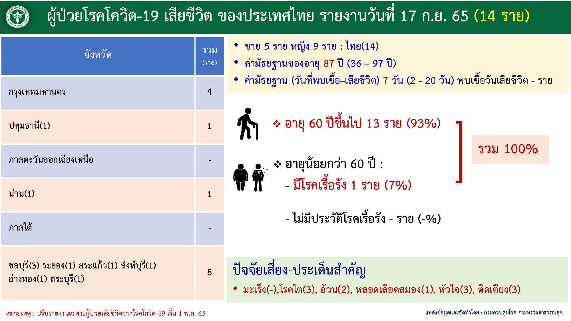 มีผู้เสียชีวิตใหม่อีก 14 ราย ยอดรวมเสียชีวิตสะสม (ตั้งแต่ 1 มกราคม 2565) 10,919 ราย