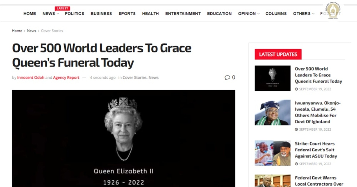 สำนักข่าวอิศรา (www.isranews.org) รายงานบรรยากาศเกี่ยวกับการจัดงานพิธีพระบรมศพสมเด็จพระราชินีนาถอลิซาเบธที่ 2 ของสหราชอาณาจักร ว่ามีการประเมินกันว่าจะมีแขกซึ่งเป็นผู้นำโลกเข้าร่วมกว่า 500 คน หลังจากที่สมเด็จพระราชินีนาถเสด็จสวรรคตเมื่อวันที่ 8 ก.ย.ที่ผ่านมา ด้วยพระชนมายุ 96 พรรษา