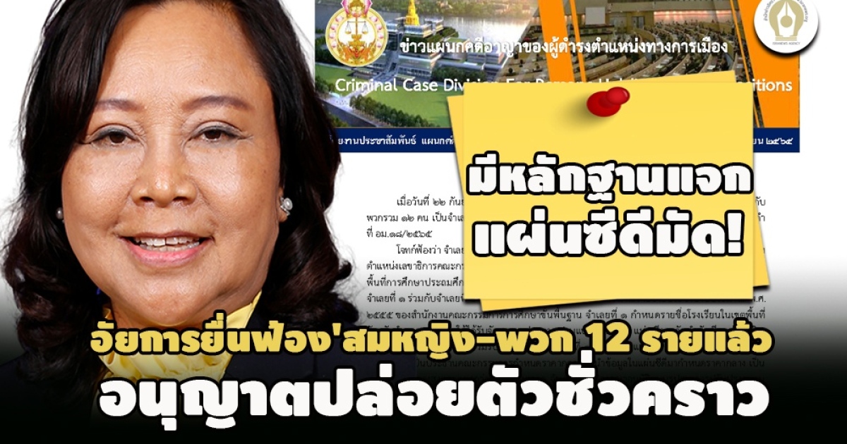 เป็นทางการ! ศาลฎีกาฯ นักการเมือง แพร่ข่าวประชาสัมพันธ์ อสส.ยื่นฟ้อง 'สมหญิง บัวบุตร -พวก 12 ราย' คดีฟุตซอลอำนาจเจริญแล้ว เผยพฤติการณ์ชัดกำหนดชื่อโรงเรียนได้รับจัดสรรงบประมาณ เชิญผอ.ฯรับฟังการชี้แจง แจกซองแผ่นซีดี ราคาแพงกว่าท้องตลาด- ส่วนกลุ่มเอกชนทำเอกสารปลอมเวียนฮั้วประมูลแถมสร้างเสร็จใช้งานไม่ได้ -ล่าสุดอนุญาตปล่อยตัวชั่วคราว นัดฟังคำสั่งรับฟ้องหรือไม่อีกครั้ง