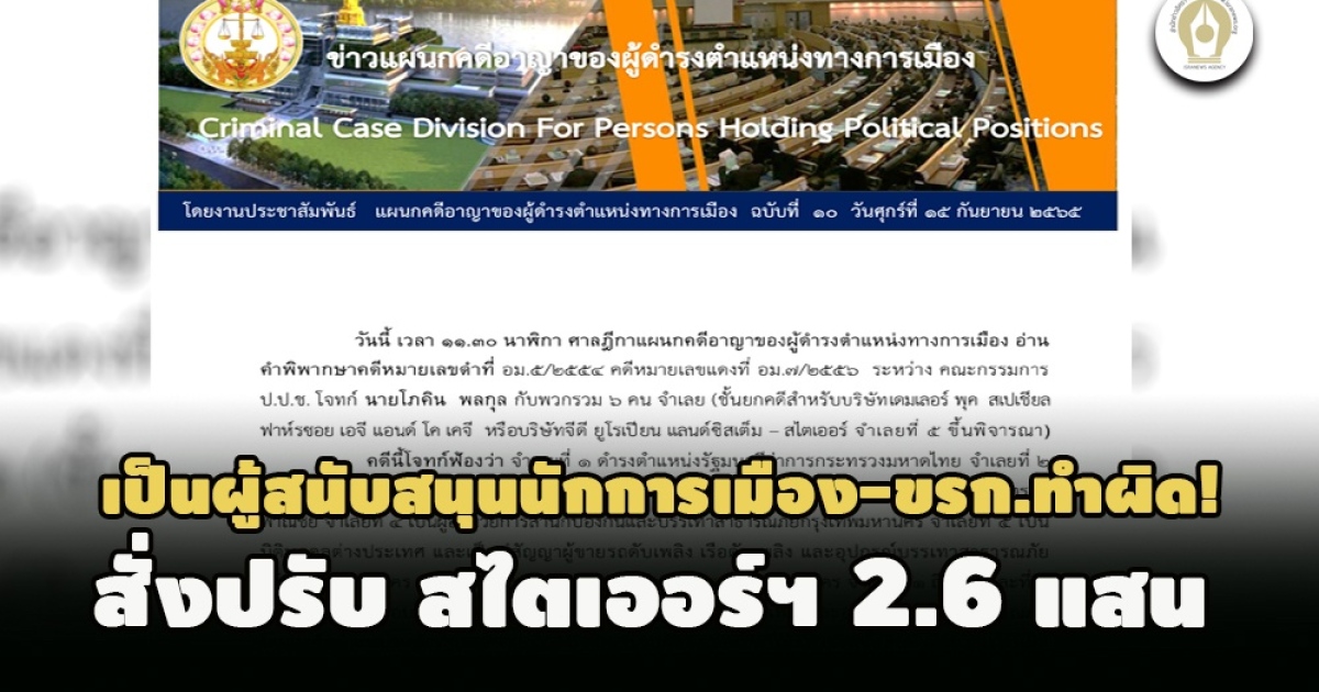 ปิดฉากคดีรถเรือดับเพลิงกทม.! ศาลฎีกาฯ นักการเมือง พิพากษาลงโทษ บ.สไตเออร์ จำเลยรายสุดท้าย สั่งปรับเงิน 266,666 บาท ชี้มีส่วนรวมตั้งแต่ต้นจนนำไปสู่แอบอ้างให้มีการลงนาม A.O.U. -ซื้อขายแบบรัฐต่อรัฐแท้จริงแค่ข้ออ้างกีดกันผู้เสนอราคารายอื่น ระบุนักการเมือง-ขรก.ไทยผิด ต้องรับโทษด้วยฐานผู้สนับสนุน