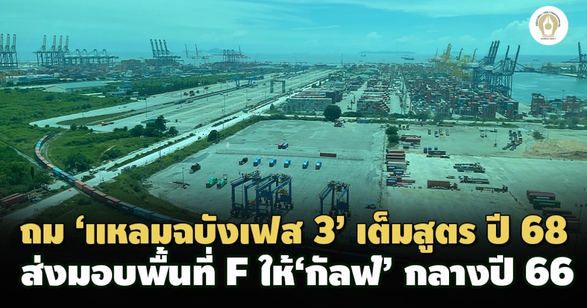 ‘ท่าเรือ’ อัปเดตแผนพัฒนา ‘แหลมฉบังเฟส 3’ เร่งถมงานโครงสร้างพื้นฐานส่วน F ส่งมอบ ‘กัลฟ์-พีทีทีแทงค์’ กลางปี 66 ก่อนกางแผนเติมเต็มส่วน F ให้จบปี 68 มองพื้นที่ E วางไทม์ไลน์พัฒนาเต็มเฟสปี 78