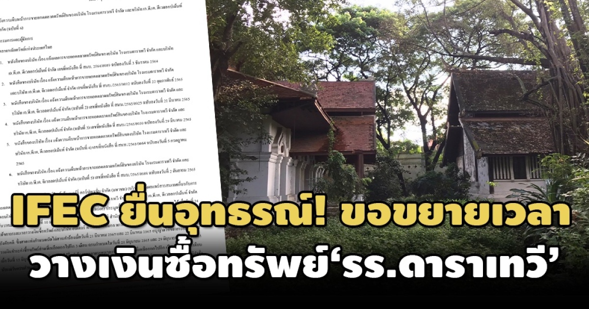 สำหรับหนังสือของ IFEC ระบุว่า ตามที่ IFEC ได้เผยแพร่สารสนเทศเกี่ยวกับการขายทอดตลาดทรัพย์สินที่ดินและสิ่งปลูกสร้างของ บริษัท โรงแรมดาราเทวี จำกัด และบริษัท เอ.พี.เค.ดีเวลลอปเม้นท์ จำกัด โดย I Thermal (บริษัทย่อย) ประมูลซื้อทรัพย์สินจากการขายทอดตลาดได้ เมื่อวันที่ 24 ธ.ค.2564 และเมื่อวันที่ 10 ม.ค.2565 เจ้าพนักงานบังคับคดี สำนักงานบังคับคดี จังหวัดเชียงใหม่ มีคำสั่งไม่อนุญาตให้ขยายระยะเวลาวางเงินซื้อทรัพย์