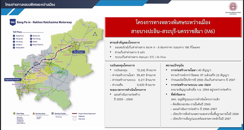 สถานะปัจจุบัน มอเตอร์เวย์บางปะอิน - นครราชสีมา ที่มา: กรมทางหลวง