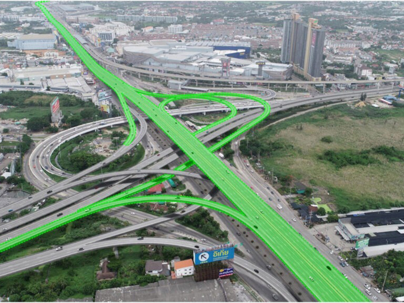 ถ.กาญจนาภิเษกฝั่งตะวันตก บริเวณต่างระดับบางใหญ่ ซึ่งในอนาคตจะมีมอเตอร์เวย์ (สีเขียว) ผ่าน ภาพจากกรมทางหลวง