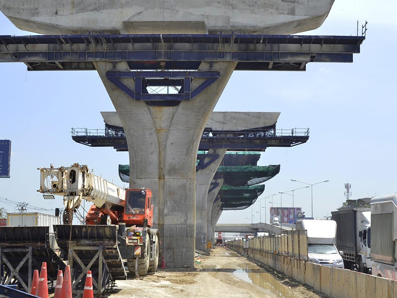 งานก่อสร้างมอเตอร์เวย์เอกชัย - บางขุนเทียน เมื่อเดือน ส.ค. 2565 (ภาพจากกรมทางหลวง)