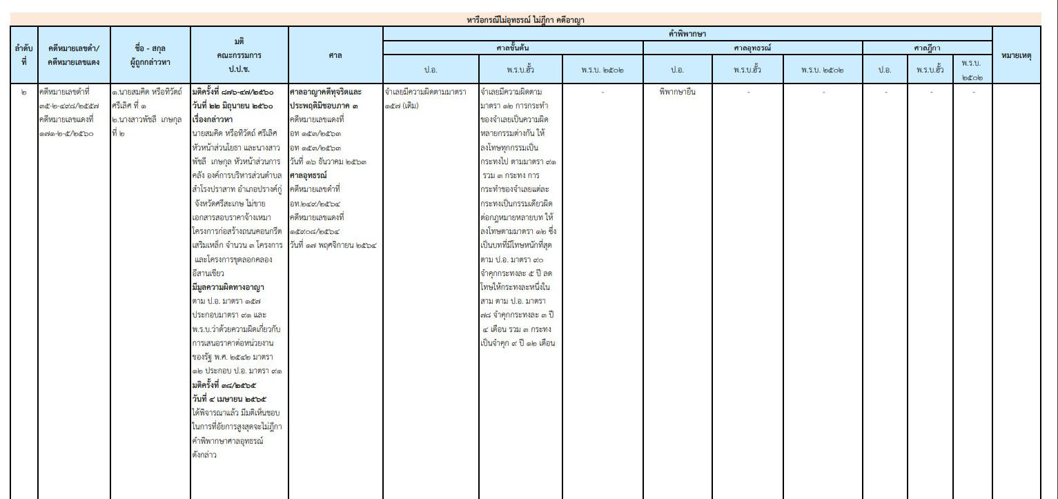 ล่าสุด เมื่อวันที่ 17 พฤศจิกายน 2564 ศาลอุทธรณ์ มีคำพิพากษายืนตามศาลอาญาคดีทุจริตและประพฤติมิชอบภาค 3 ที่มีคำพิพากษาว่า จำเลย มีความผิดตามประมวลกฎหมายอาญา มาตรา 157 และมีความผิดตาม พ.ร.บ.ว่าด้วยความผิดเกี่ยวกับการเสนอราคาต่อหน่วยงานของรัฐ พ.ศ.2542 มาตรา 12