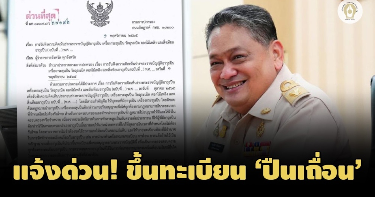 กรมปกครอง กระทรวงมหาดไทย ส่งหนังสือแจ้งด่วน ใครมี 'ปืนเถื่อน' รีบนำมาขอรับอนุญาตให้ถูกกฎหมาย ภายในเวลากำหนดโดยไม่มีโทษ