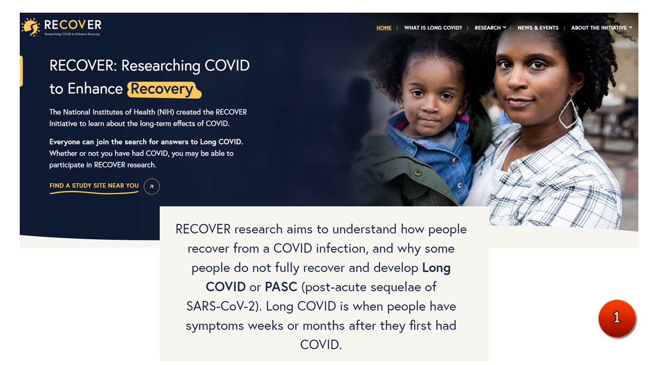 สถาบันสุขภาพแห่งชาติสหรัฐอเมริกา (NIH) แถลงว่าจะมีการทดลองใช้ยาเม็ดต้านไวรัสที่ยับยั้งการสร้างอนุภาคไวรัสโคโรนา 2019 มาใช้รักษาอาการลองโควิด (Long Covid) ภายใต้โครงการวิจัยและการทดลองทางคลินิกสำหรับโรคลองโควิด-19 ที่มีชื่อว่า “RECOVER Initiative” โดยได้รับทุนวิจัยมูลค่า กว่า 1 พันล้านดอลลาร์สหรัฐ หรือ 3.7 หมื่นล้านบาท มี Duke Clinical Research Institute ซึ่งเป็นหน่วยงานหนึ่งของคณะแพทยศาสตร์มหาวิทยาลัย "ดุ๊ก (Duke)" ที่เป็นองค์กรวิจัยทางคลินิกเชิงวิชาการที่ใหญ่ที่สุดในโลกเข้ามาดูแลการทดลองแบบสุ่มและควบคุมด้วยยาหลอก ซึ่งจะทดสอบการรักษาอาการลองโควิดด้วยยาต้านไวรัสประเภท "สารยับยั้งโปรตีเอส (protease inhibitor) ที่สามารถยับยั้งการทำงานของเอนไซม์ของไวรัสไม่ให้สร้างอนุภาคไวรัสที่สมบูรณ์ มีอาสาสมัครในช่วงอายุ 18 ปีขึ้นไปจำนวน 1,700 คนที่มีอาการลองโควิดเข้าร่วมโครงการ โดยจะสุ่มให้ได้รับยายับยั้งโปรตีเอสและยาหลอก มีกำหนดเริ่มการทดลองทางคลินิกในวันที่ 1 มกราคม พ.ศ. 2566