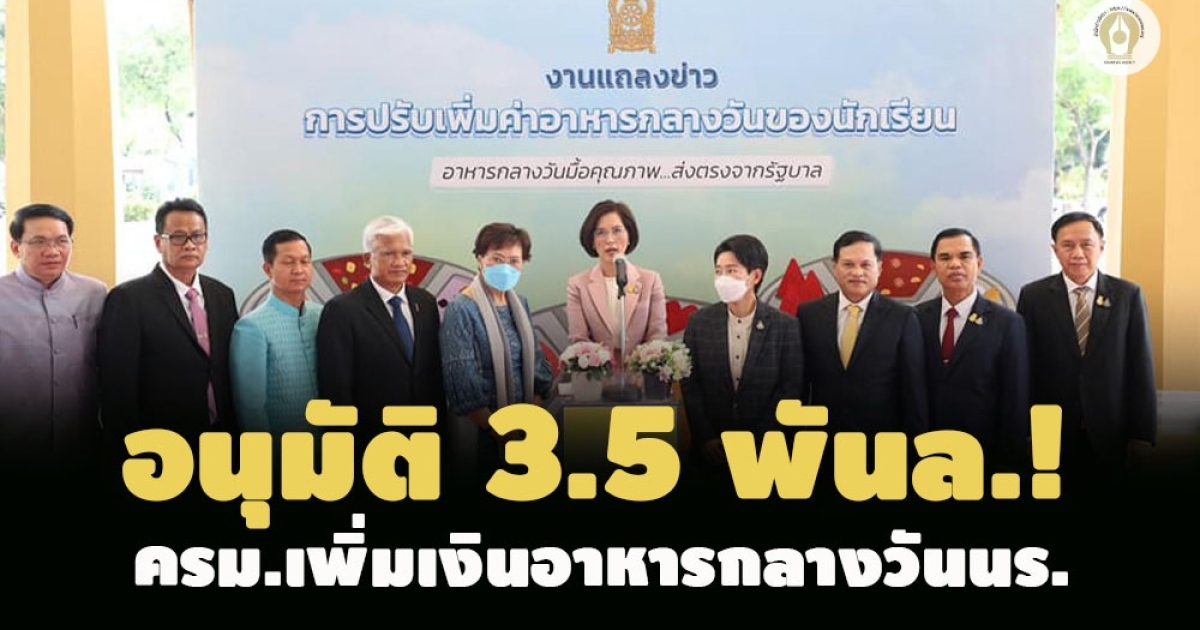 ครม. อนุมัติปรับเพิ่มอัตราค่าอาหารกลางวันเด็กเล็ก-ป.6 ทุกสังกัด สถานศึกษาในทุกสังกัด 51,637 โรงเรียน จาก 21 บาท/คน/วัน ตามขนาดโรงเรียนแบบขั้นบันได 121 คนขึ้นไปได้ 22 บาท , 1-40 คน มากสุด 36 บาท สอดคล้องสภาพเศรษฐกิจสังคมปัจจุบันค่าครองชีพสูงขึ้น