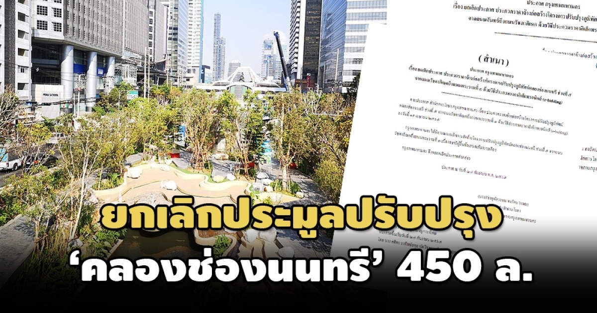 ‘กทม.’ ยกเลิกประมูลปรับปรุงภูมิทัศน์ ‘คลองช่องนนทรี’ ช่วงที่ 4 และ 5 หลังมีผู้ยื่นเสนอราคาแค่รายเดียว 'โฆษกกรุงเทพฯ' เผยชะลอการประมูลออกไปไม่มีกำหนด กันงบฟื้นฟูโครงสร้างพื้นฐานหลังเหตุการณ์น้ำท่วม