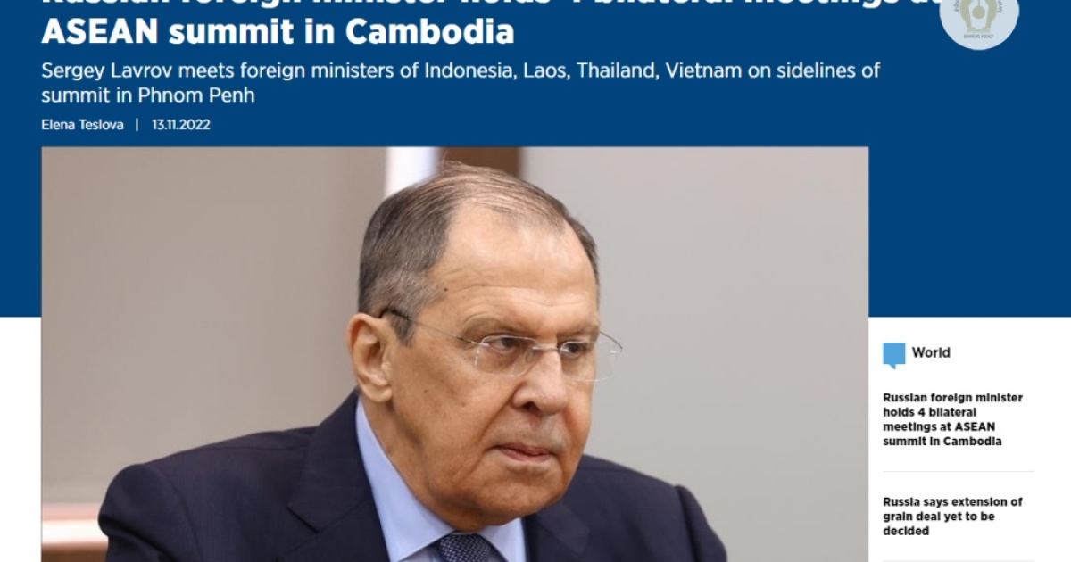 เรียบเรียงจาก:https://www.aa.com.tr/en/asia-pacific/russian-foreign-minister-holds-4-bilateral-meetings-at-asean-summit-in-cambodia/2736520,https://www.aljazeera.com/news/2022/11/12/ukraine-minister-urges-asean-bloc-to-stop-russias-hunger-games