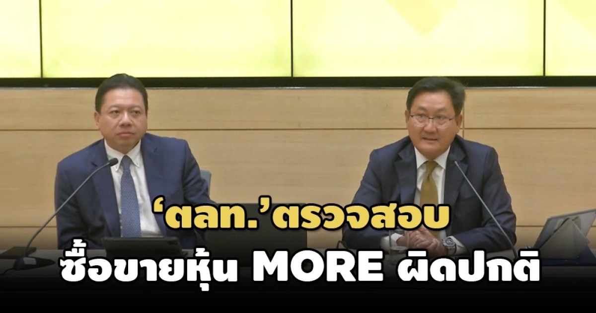 ‘ตลท.’ สั่งพักการซื้อขายหุ้น MORE พร้อมเดินหน้าตรวจสอบกรณีซื้อขายที่ผิดปกติ ยืนยันไม่กระทบเสถียรภาพของตลาดฯ ขอนักลงทุนเชื่อมั่น