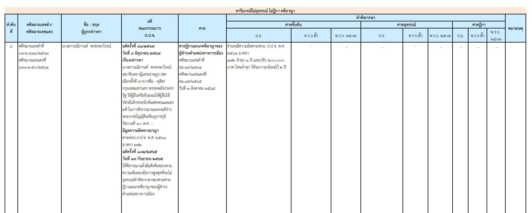 ซึ่งถูกคณะกรรมการ ป.ป.ช. ลงมติชี้มูลความผิดทางอาญา ตาม พ.ร.ป.ว่าด้วยการป้องกันและปราบปรามการทุจริต พ.ศ. 2561 มาตรา 172 ตั้งแต่เมื่อวันที่ 8 มิถุนายน 2564 ที่ผ่านมา