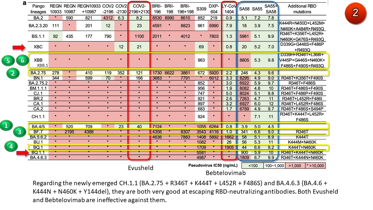 ส่วนโอไมครอนสายพันธุ์ย่อย BQ.1,BQ.1.1, XBB, และ XBB.1 จากการทดสอบในห้องปฏิบัติการพบว่าดื้อต่อแอนติบอดีสำเร็จรูป "อีวูชีลด์" อาจต้องเปลี่ยนไปใช้แอนติบอดีค็อกเทลที่มีศักยภาพสามารถยับยั้งไวรัสโคโรนา 2019 หรือ SARS-CoV-2 ได้ทุกสายพันธุ์ (Broadly Neutralizing Monoclonal Antibodies) อาทิ แอนติบอดีค็อกเทล SA55 และ SA58 ซึ่งผลจากห้องปฏิบัติการพบว่าสามารถยับยั้ง ไวรัสโคโรนา 2019 ได้ทุกสายพันธุ์ทั้งในอดีตและปัจจุบัน