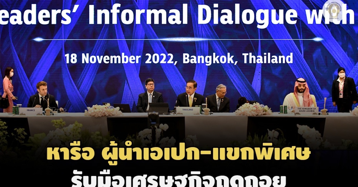ประยุทธ์ หารือกับผู้นำเขตเศรษฐกิจเอเปก-แขกพิเศษ รับมือเศรษฐกิจโลกถดถอย พร้อมร่วมหาแนวทางส่งเสริมการเจริญเติบโตที่ครอบคลุมท่ามกลางความท้าทาย เพิ่มพูนความร่วมมือเพื่อลดช่องว่างการพัฒนา เดินไปข้างหน้าโดยไม่ทิ้งใครไว้ข้างหลัง