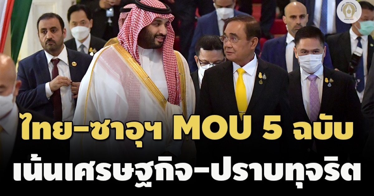 ‘ประยุทธ์-มกุฎราชกุมารซาอุฯ’ หารือทวิภาคี พร้อมแลกเปลี่ยนความช่วยเหลือหลายด้านทั้ง อาหาร-อุตฯ-Mega project-แรงงาน-พลังงาน ก่อนลงเอยที่การลงนามใน MOU 5 ฉบับเน้นหลักด้านเศรษฐกิจ-ปราบปรามการทุจริต