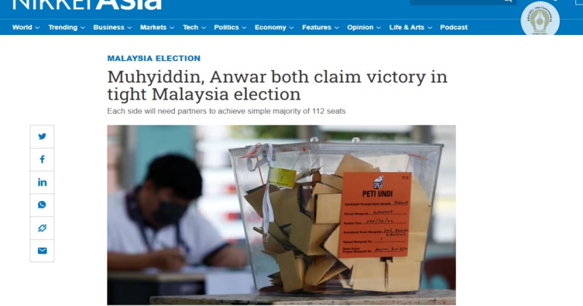 เรียบเรียงจาก:https://asia.nikkei.com/Politics/Malaysia-election/Muhyiddin-Anwar-both-claim-victory-in-tight-Malaysia-election,https://www.nst.com.my/news/politics/2022/11/852848/ge15-no-clear-winner-says-ec-chairman-updated