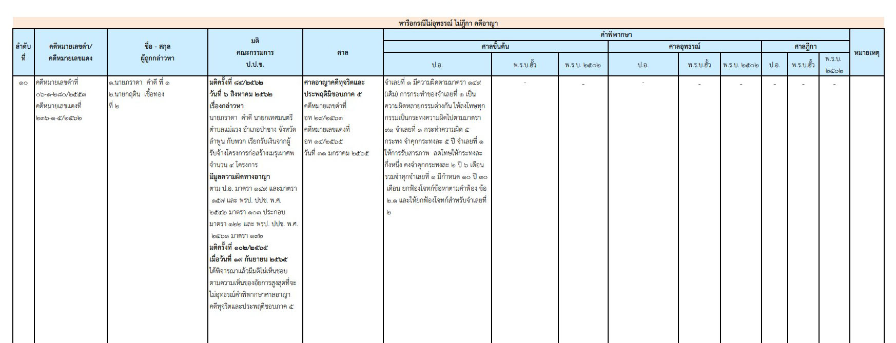 ซึ่งถูกคณะกรรมการ ป.ป.ช. ลงมติชี้มูลความผิดทางอาญา ตามประมวลกฎหมายอาญา มาตรา 149 และ 157 และ พ.ร.ป. ป.ป.ช. พ.ศ.2542 มาตรา 103 ประกอบมาตรา 122 และ พ.ร.ป. ป.ป.ช. พ.ศ.2561 มาตรา 192 ตั้งแต่เมื่อวันที่ 6 สิงหาคม 2562 ที่ผ่านมา