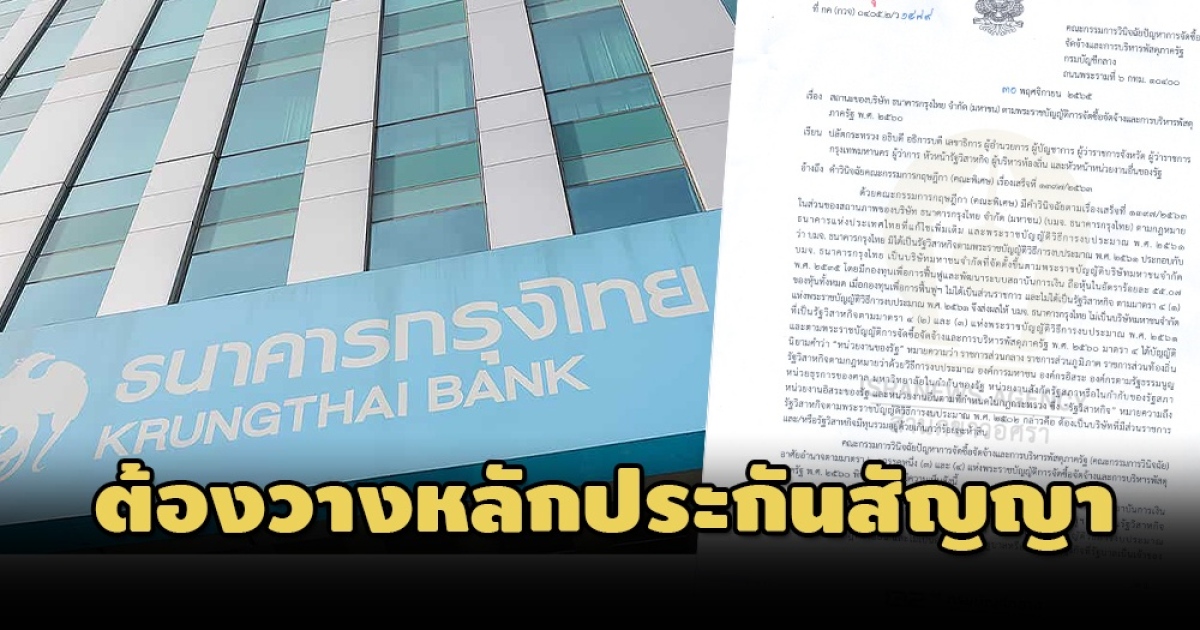 ประกอบกับ บมจ.ธนาคารกรุงไทย เป็นบริษัทมหาชนจำกัด ที่จัดตั้งขึ้นตาม พ.ร.บ.บริษัทมหาชนจำกัด พ.ศ.2535 โดยมีกองทุนเพื่อการพินฟูและพัฒนาระบบสถาบันการเงิน ถือหุ้นในอัตราร้อยละ 55.07 ของหุ้นทั้งหมด