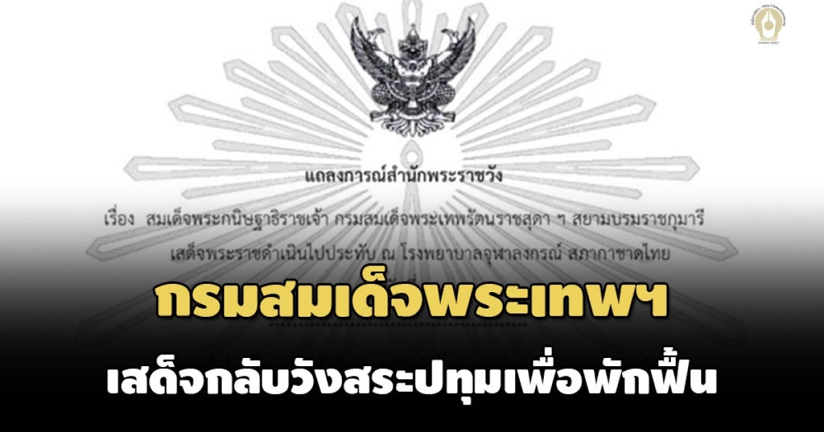 พระอาการสมเด็จพระกนิษฐาธิราชเจ้า กรมสมเด็จพระเทพฯ ดีขึ้น แพทย์กราบบังคมทูลเชิญเสด็จกลับวังสระปทุมเพื่อพักฟื้นพระวรกาย