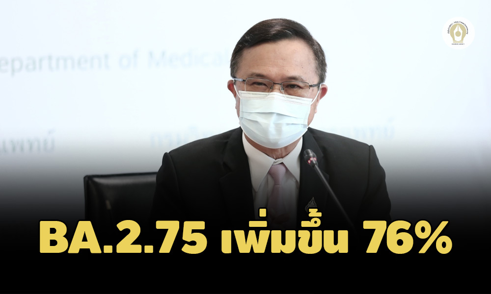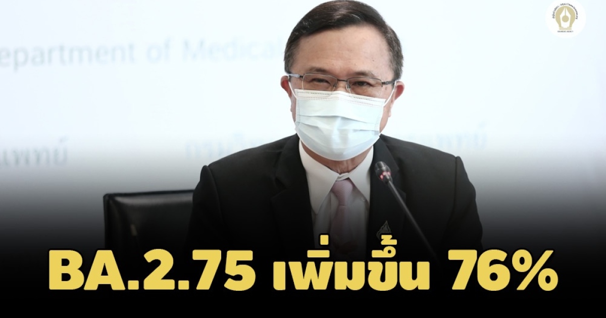 สธ.เผยสายพันธุ์ BA.2.75 และลูกหลาน มีสัดส่วนเพิ่มขึ้น 76% กลายเป็นสายพันธุ์หลักในประเทศ ย้ำวัคซีนเข็มกระตุ้นช่วยลดโอกาสติดเชื้อและความรุนแรงได้