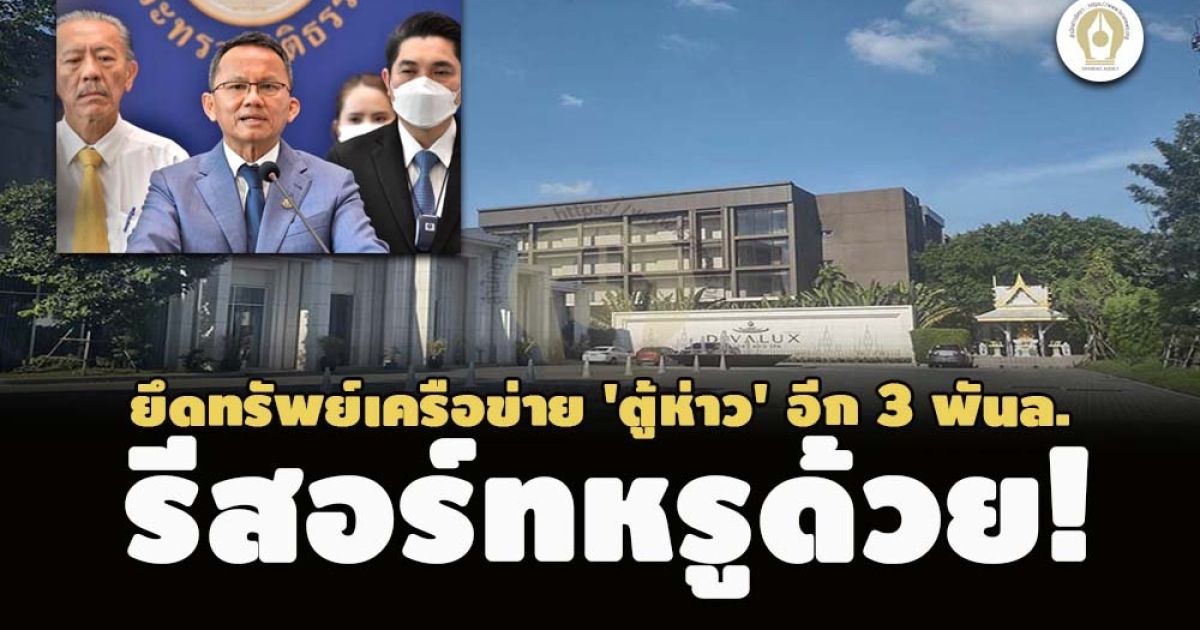 'สมศักดิ์ เทพสุทิน' รมว.ยุติธรรม แถลงยึดทรัพย์ตู้ห่าวเพิ่มอีก 3 พันล้านที่ดินกว่า 39 ไร่ รถยนต์หรู 5 คัน รีสอร์ทดิวาลักซ์โดนด้วย 'ชูวิทย์'เผยส่วนแบ่ง 5 เปอร์เซ็นต์ ขอบริจาคให้ รพ.ทั้งหมด